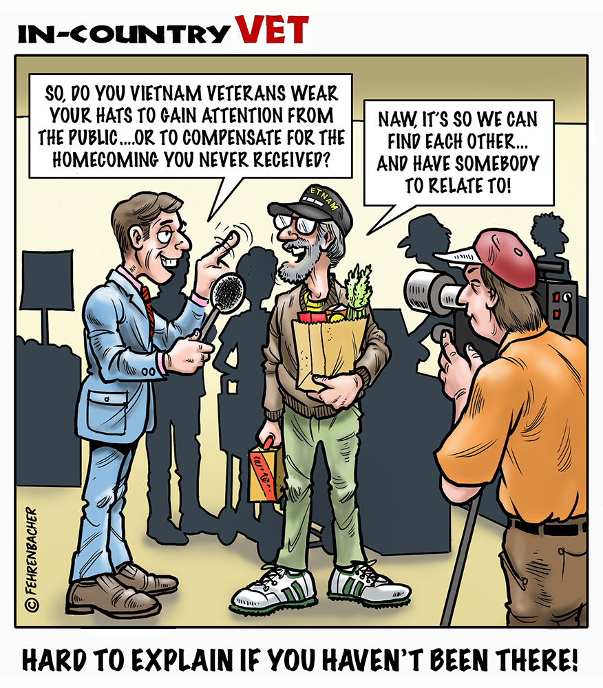 Phil enlisted in the Army in 1965 where he served for years in Vietnam. He became a graphic designer and has worked for the state of Oregon for 26 years. He retired in 2003 and started the Cartoon "In-Country". The cartoons reflect his experiences during his tour of duty in South Vietnam.